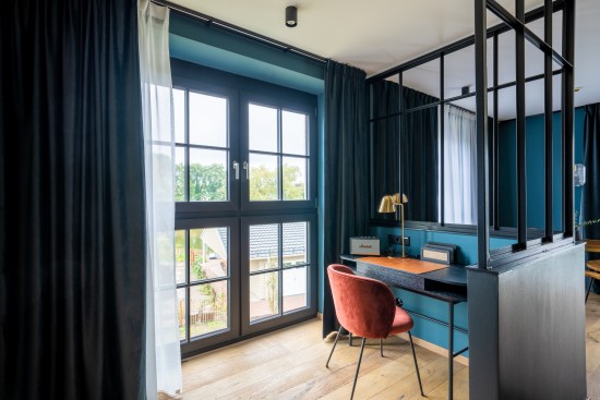 De plus, la sensation (au toucher) est également très différente des fenêtres classiques. Lorsque l'on touche les profilés des fenêtres, on est surpris par le toucher velours qui accentue ainsi les normes de qualité et de design haut de gamme de ce concept hôtelier.