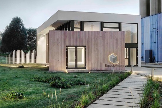 Ce bâtiment de 157 m² est totalement intégré dans son environnement et réalisé de façon à obtenir l'efficacité énergétique maximale.